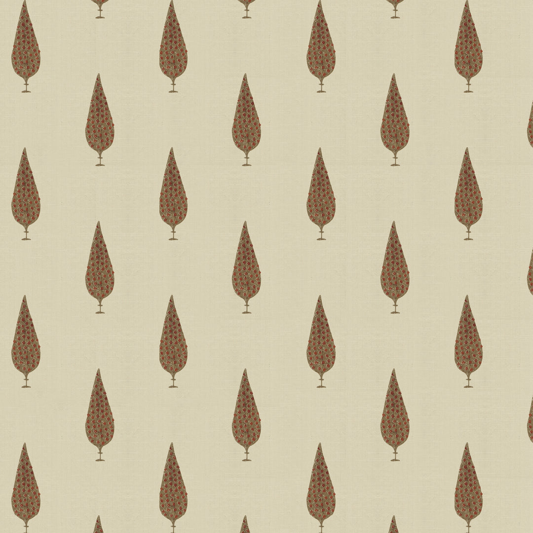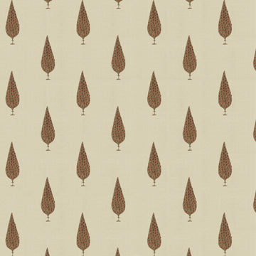 Midweight linen blend fabric featuring printed cypress pattern.